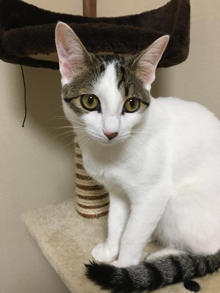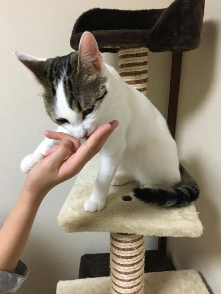今日はキャットタワーで娘からちゅーるを貰ったミルク😊