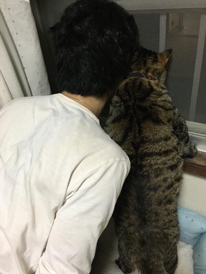 こんな感じで外を見ている時に真横にいると鼻息荒くフンッ‼️って言ってからピタッと寄り添うゲン。