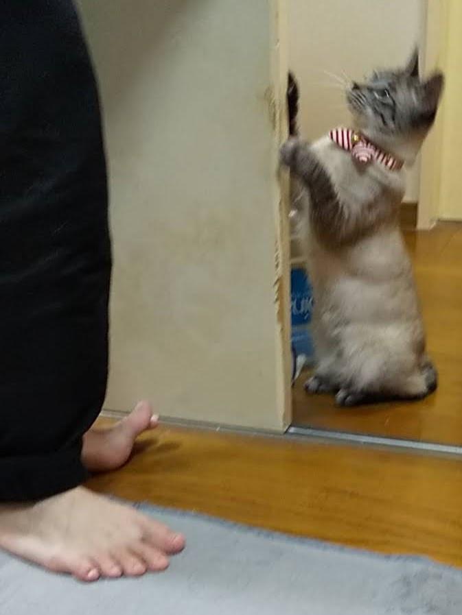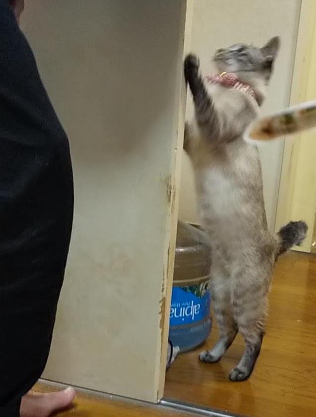 お兄ちゃんと散々遊んだ後、やたらににゃーにゃーしているので