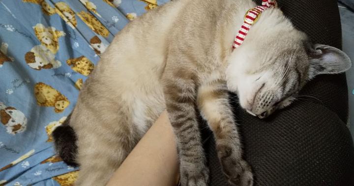 私の腕をお腹の下に引っ張って熟睡💦💦