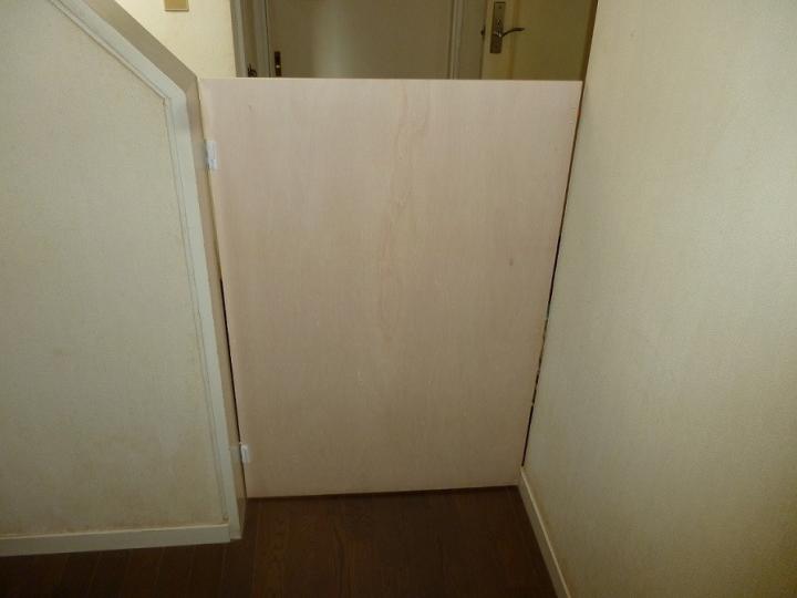 そのために、急遽材料を買い階段に通じる通路に扉を設置した。