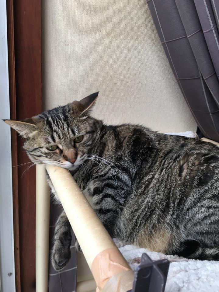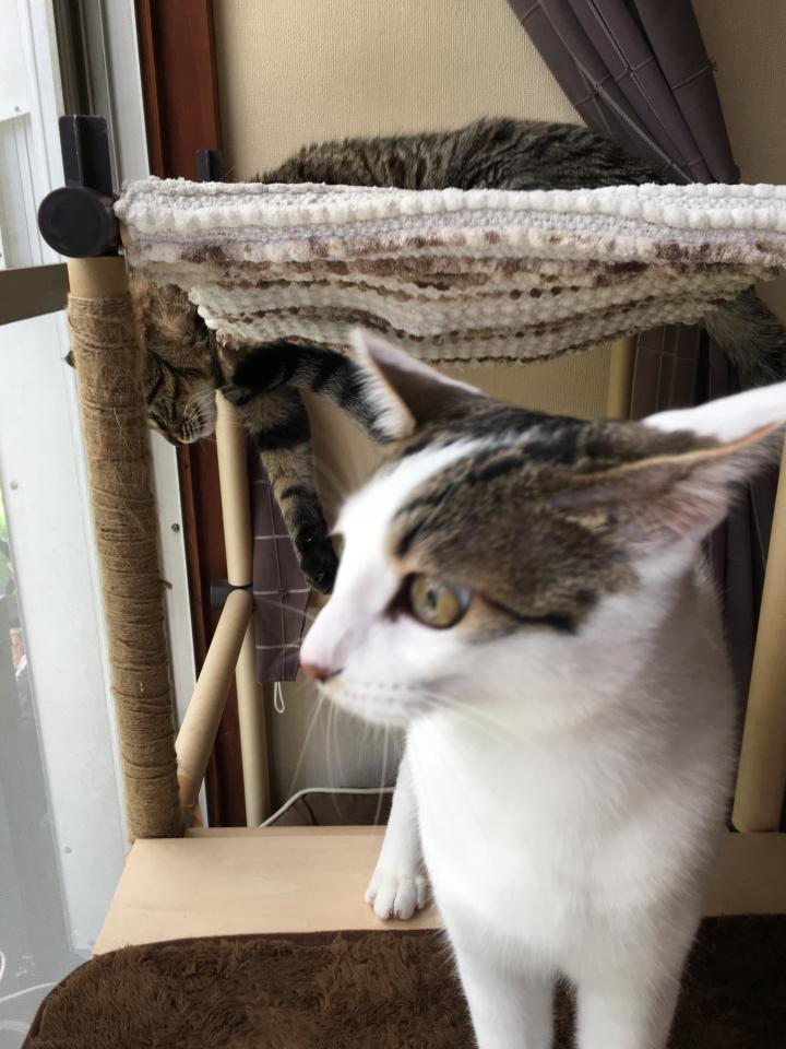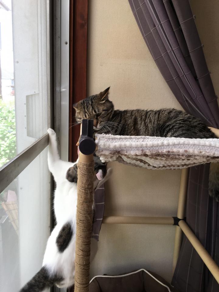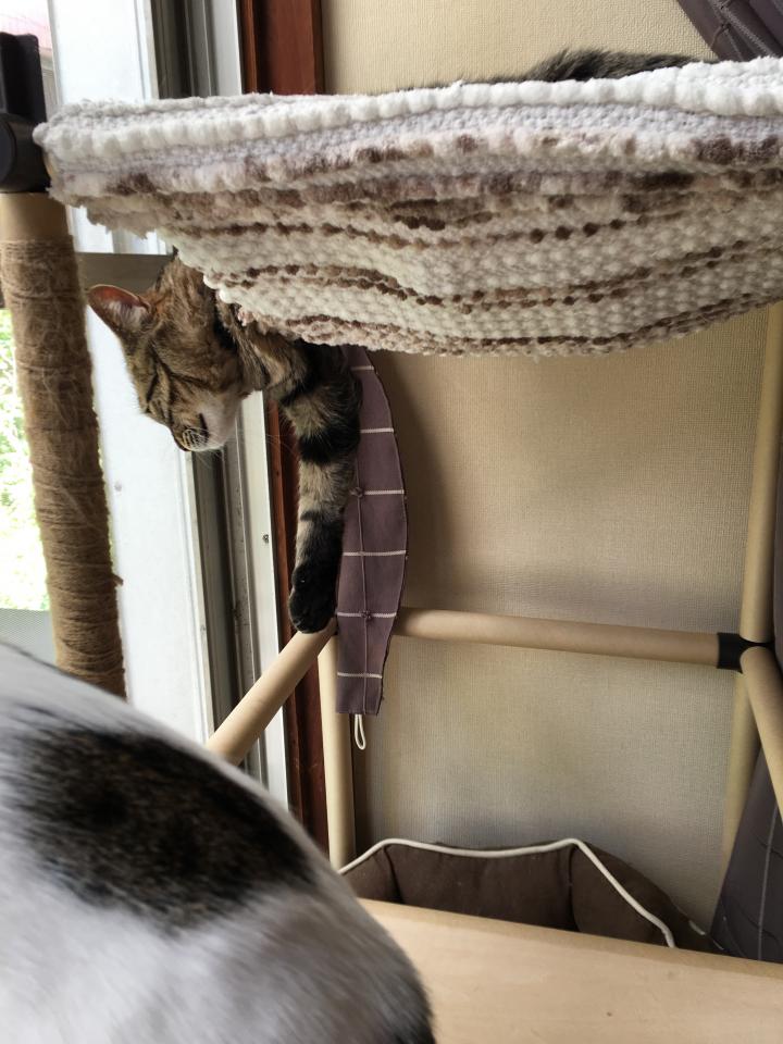 さてさて、本日も朝から一階キャットタワーで寛ぎたいゲン笑