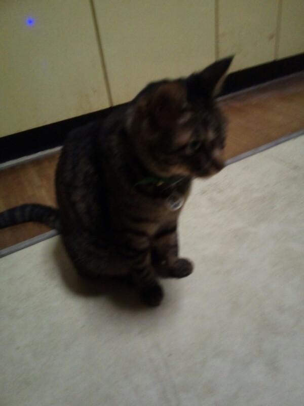 じゃらしを振っても、あまり飛びつきません。無理させたくないので