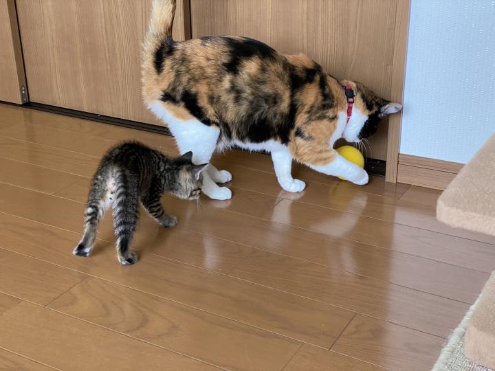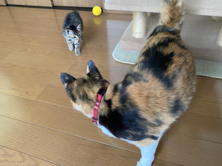 先住猫のひめこもいじめることなく、ルルちゃんがひめこの後をついて回っていたのでつい嬉しくなってしまいました。