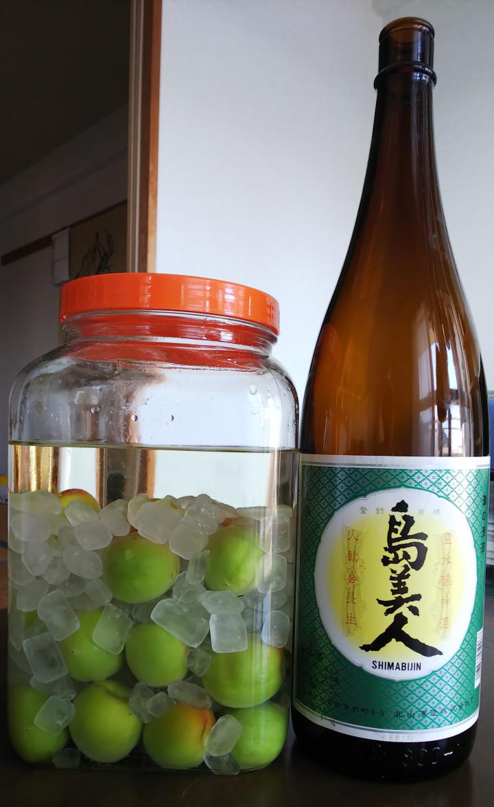 去年、イベントで当たった日本酒を使って、梅酒をつけました。ずーっとこの時を待ってた。