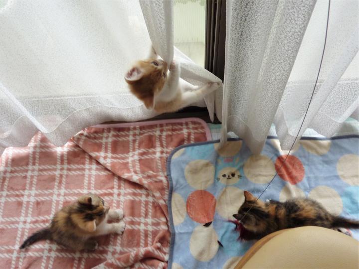 チャミだけ玩具で遊んでいるとこを撮れていないです。