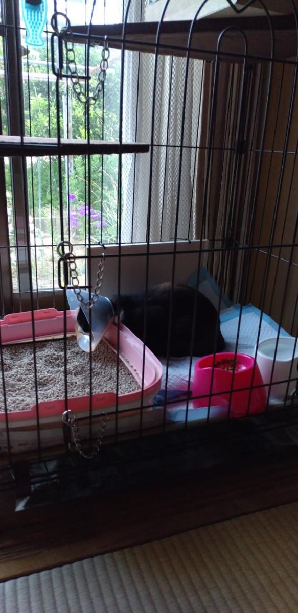 あまりにうろうろするので、早々にケージに入れたんだけど、