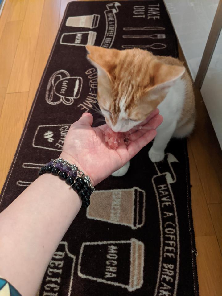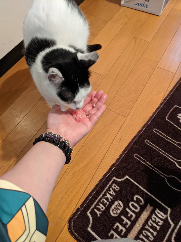 〈マグロのスキ身を食べました(^q^)キッツは切り身の方が好みの様ですΣ(´∀`;)ナッツは切り身を食べるのが下手くそなのでスキ身が良いみたいです(笑)可愛い(*´艸`*)〉