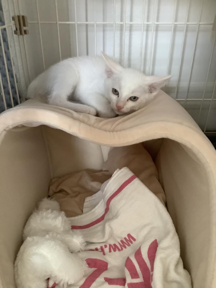 かなり車に乗って疲れたみたいでご飯を食べて水を飲んでゲージの中でグッスリと眠りました(^。^)