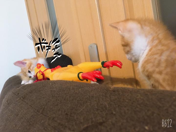 部屋を闊歩している2匹ですが、くぅおばさんは未だに「気安く近づくんじゃねぇ!」