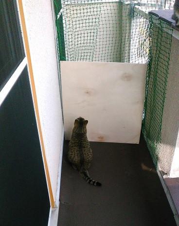 ネット(網)への咬みつき防止対策として、下部を板張りに。