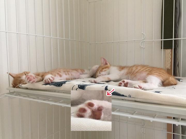 せっかくのピンク肉球がああぁあ、薄汚れとるぅう😑