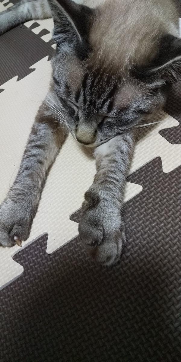 最初はダイニングで寝ていましたが、ちょっと撫でてあげたら