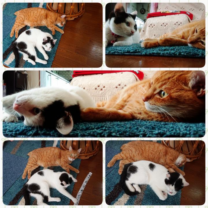 久しぶりのツーショットで、私が一番喜んでいます。昨日は、蒸し暑く側に来て寝るなんてまずしないのに、どうしたの?