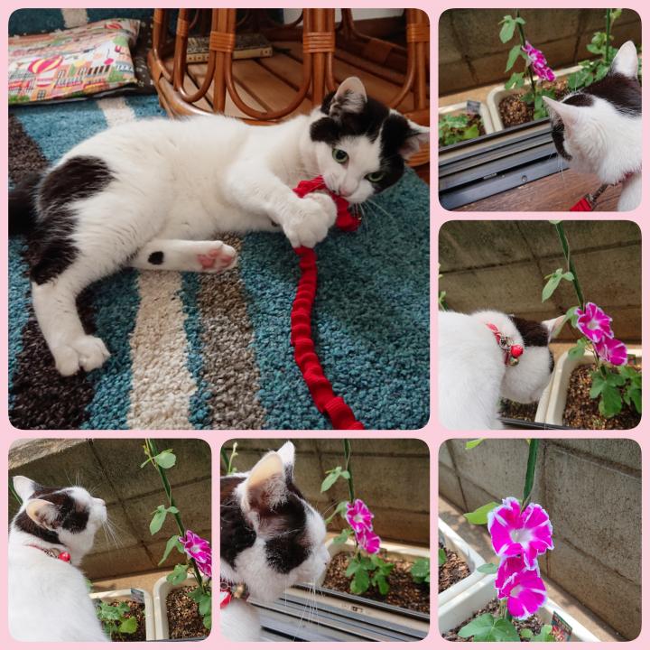 普段、リード着けないから、杏は朝顔の花を観賞したあと、気になってリード着けたまま廊下をダッシュ💨リビングに戻りリードをガジガジ😅