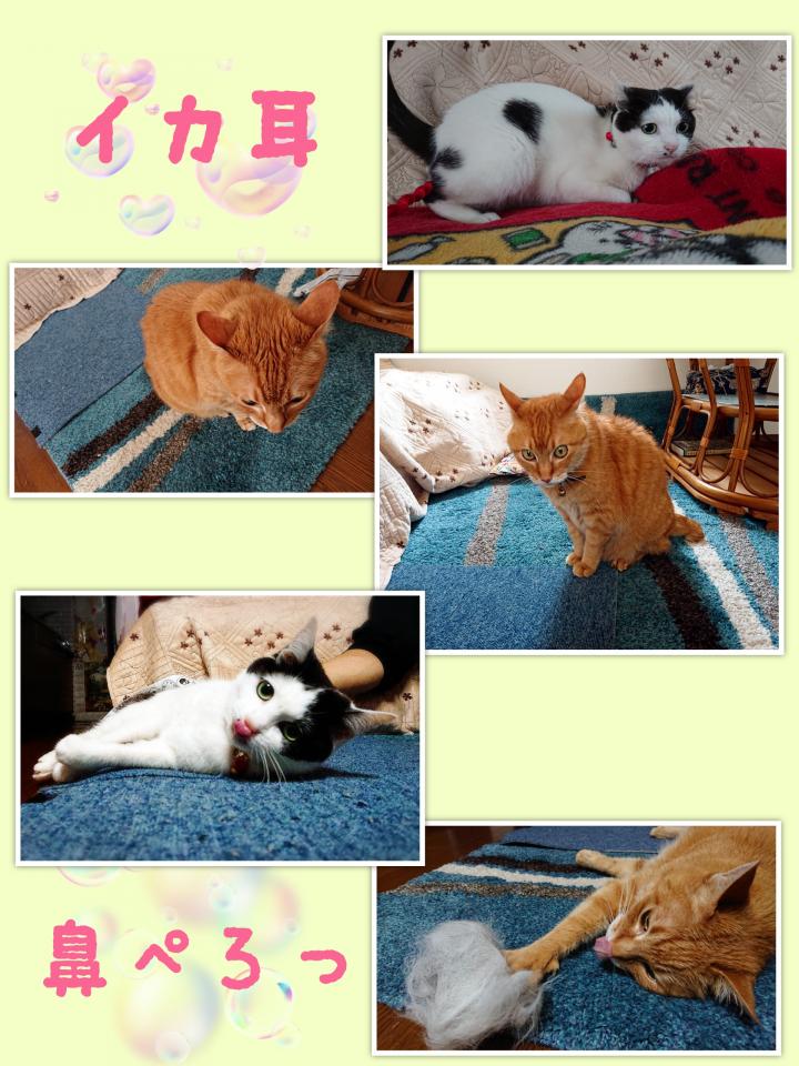 昨日は、外の音が騒がしくて、イカ耳になることが多くて、イカ耳と鼻ぺろっの写真です。