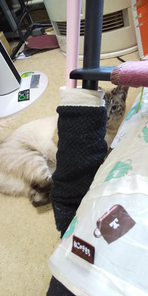 ケリケリして暑くなったら こたつテーブルに移動(笑)