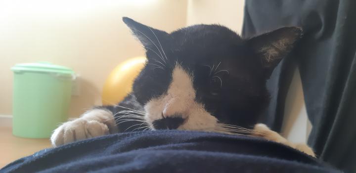 ハチくん、こんなです(笑)→金曜日に一緒に昼寝したんですが、カリタのお腹は布団代わりでしょうか?(笑)