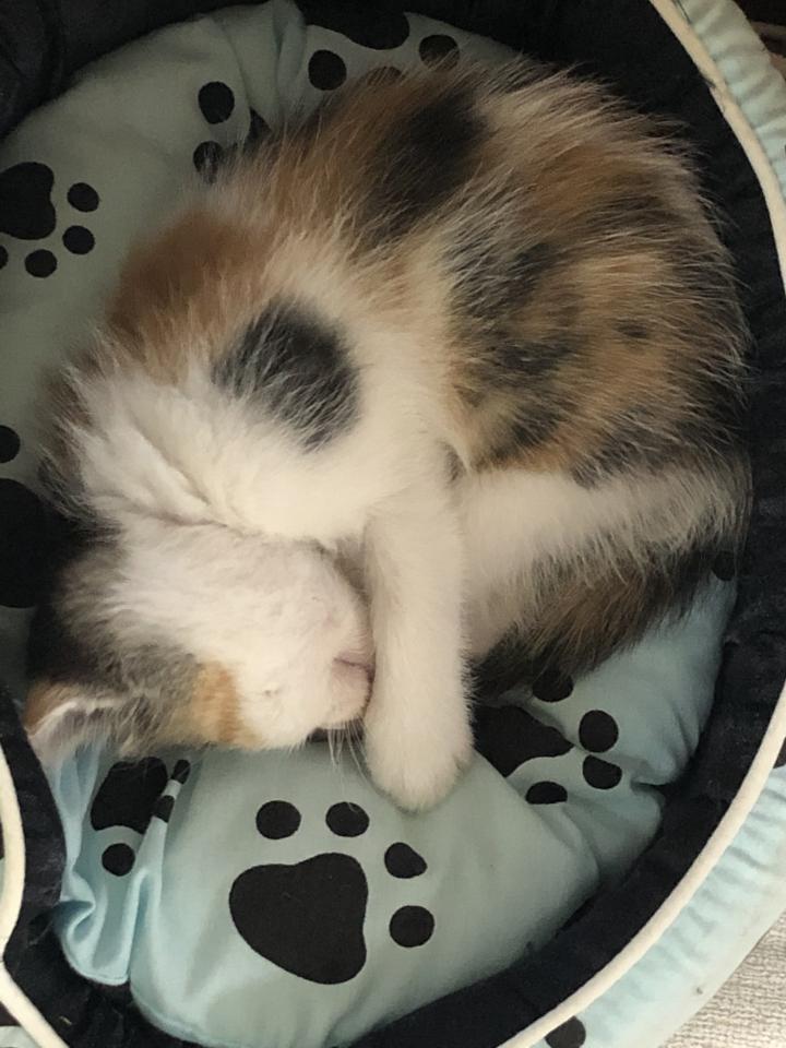 家の中を一通り探検して、ゲージの中でお昼寝中です。人懐っこくてお膝の上も大好き、食欲旺盛だし、よく寝るしすくすく育ってね。