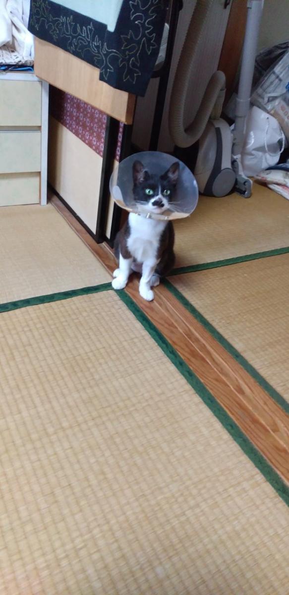 おはぎちゃん、避妊手術後からつけてるカラーも、明日やっと外せます。