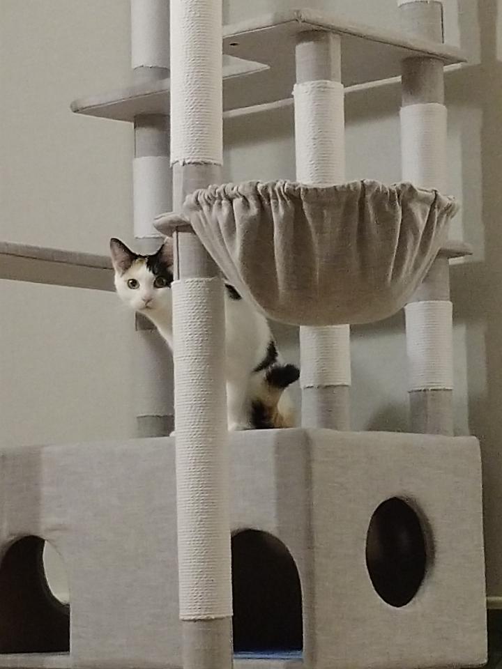 ミナちゃんもキャットタワーを満喫中!