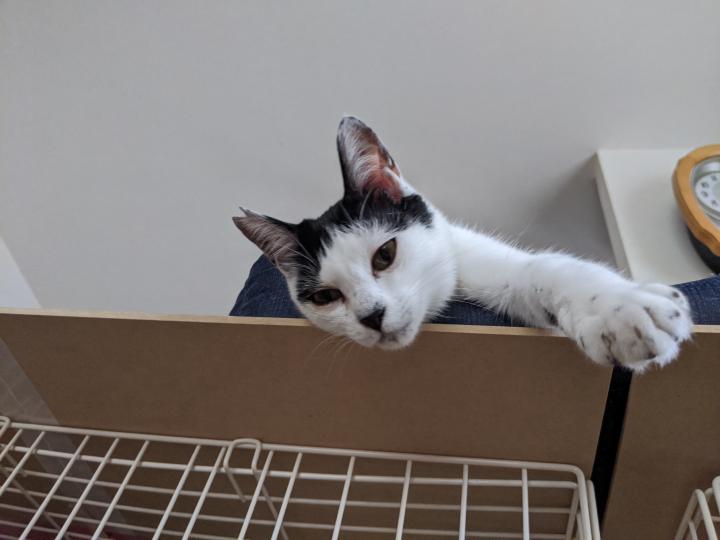 トイレ掃除していたらケージの上から覗いて頭を撫でてくれました( ◜‿◝ )♡