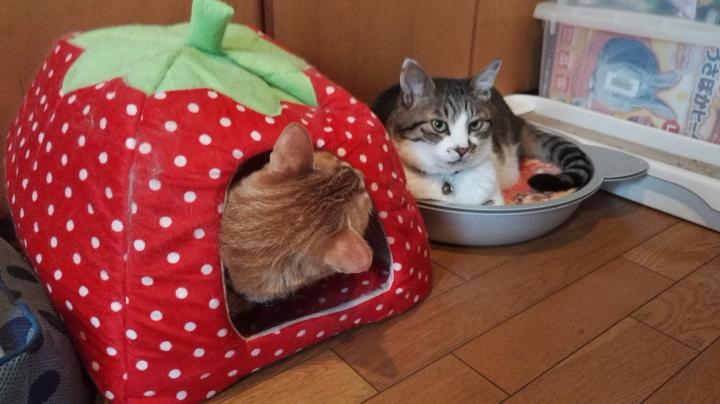 ベッドをハウスに直すと、すぐに弟くんが検品、お兄ちゃんは移動