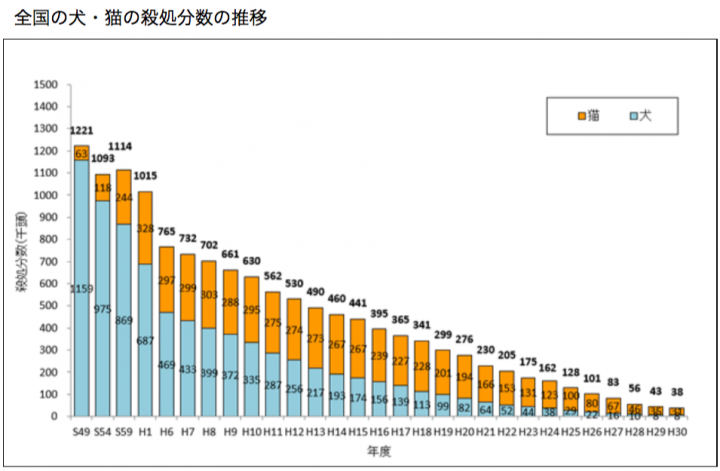 ・殺処分数には、保管中の病気等による自然死も含まれる。