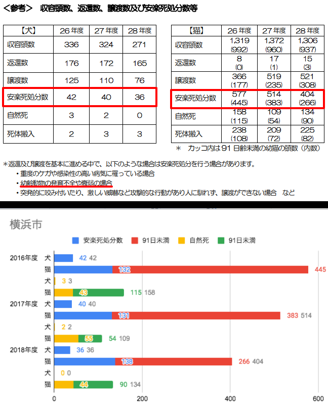 横須賀市でも殺処分はあり、神奈川県全体では、殺処分は行われています。