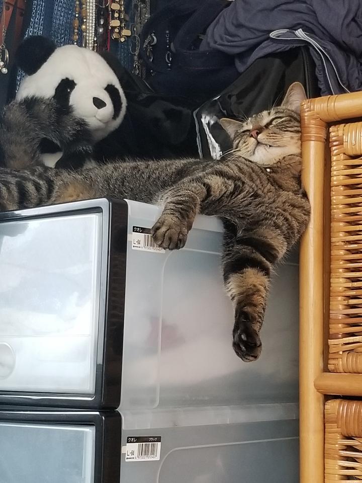 本棚の上でくつろぐアクア
