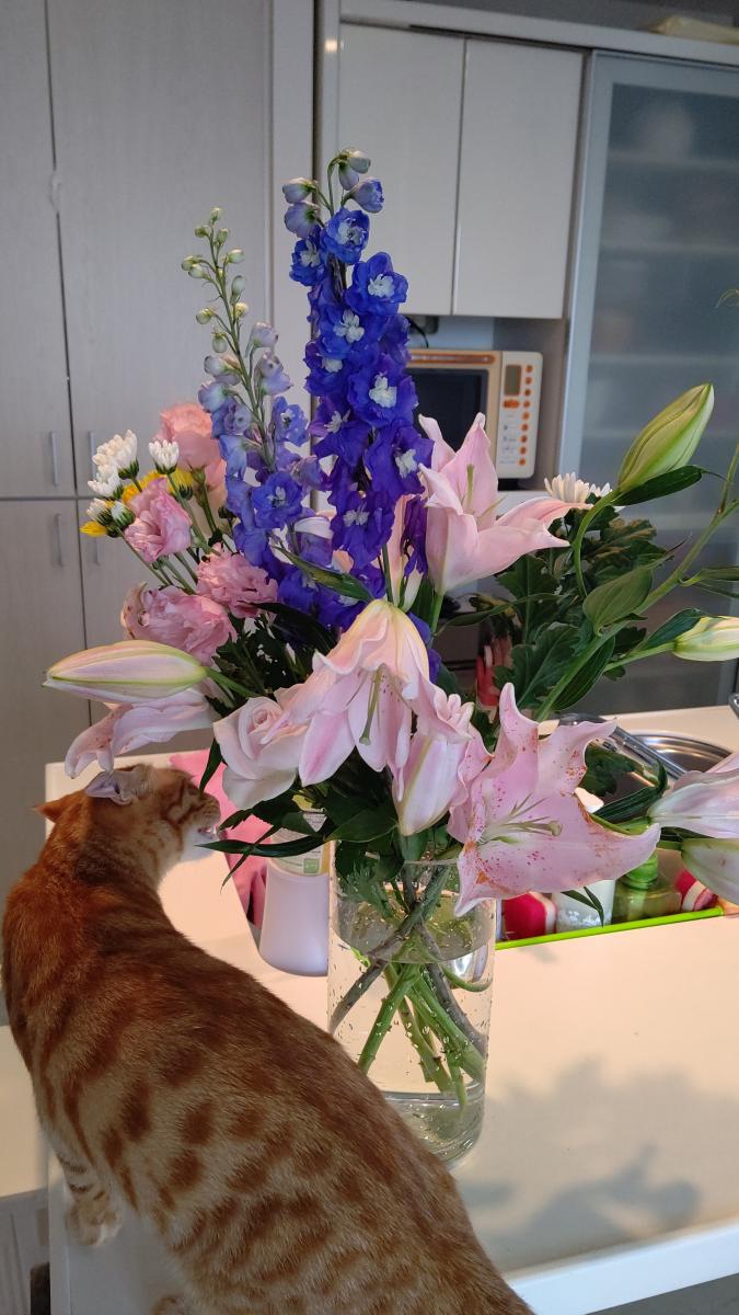 と家に帰り、久々に花瓶を取り出し活けてみました♥️