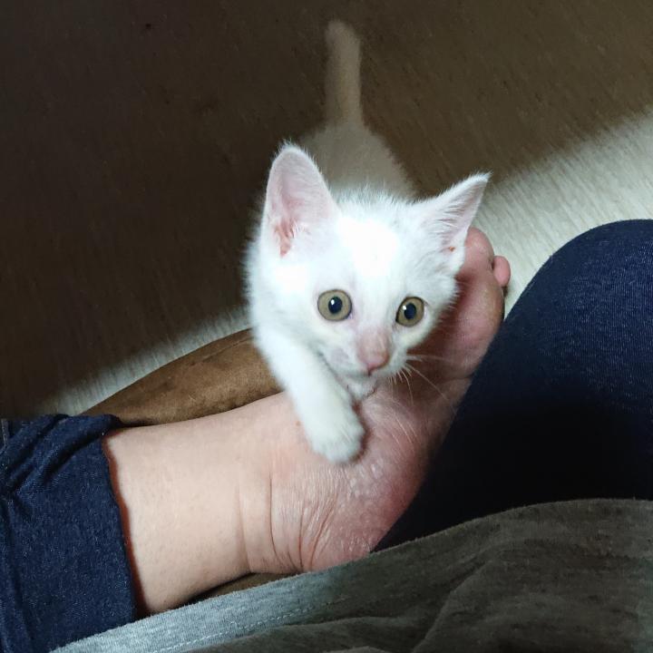 4匹の子猫の里親探しをしている最中に、やって来た白い子。
