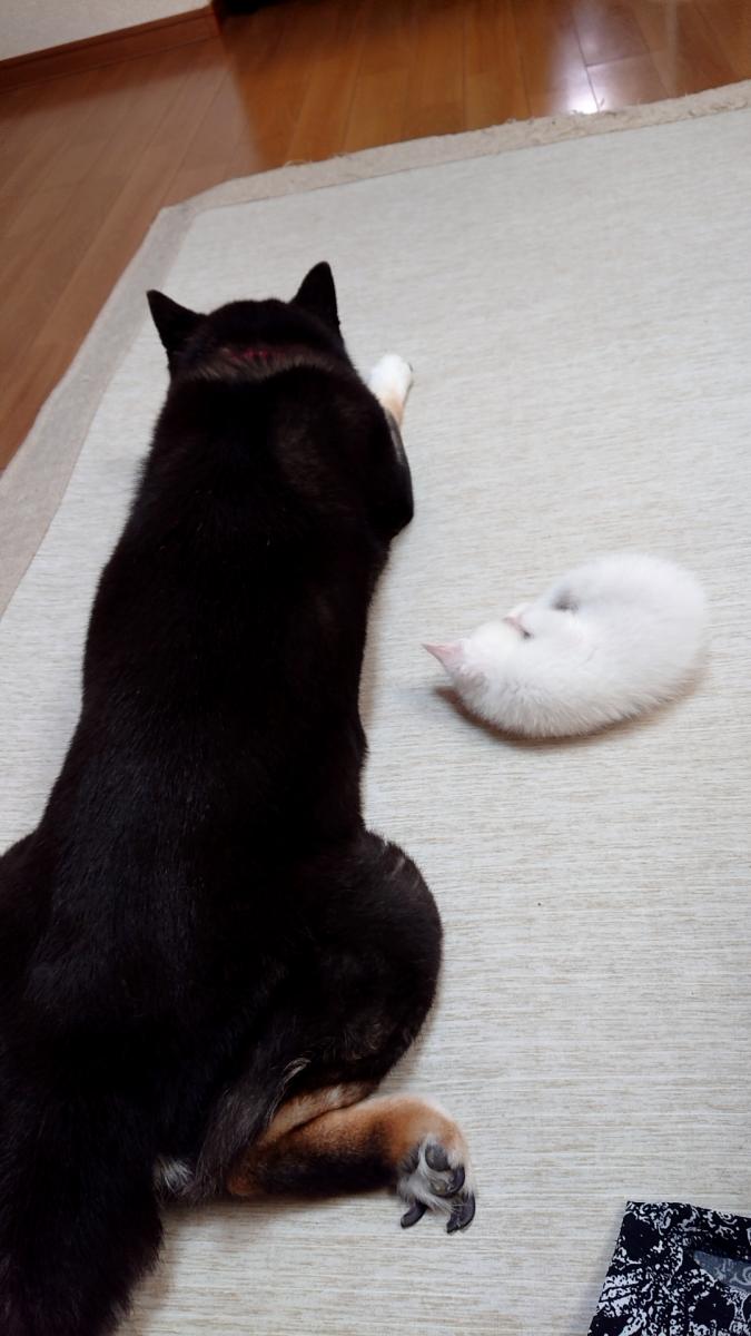 既に大人猫にも柴犬カリンにも馴染んでます。