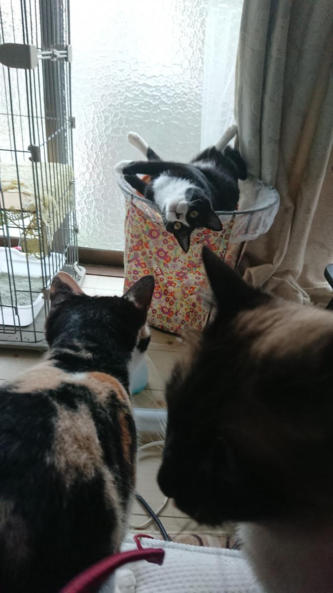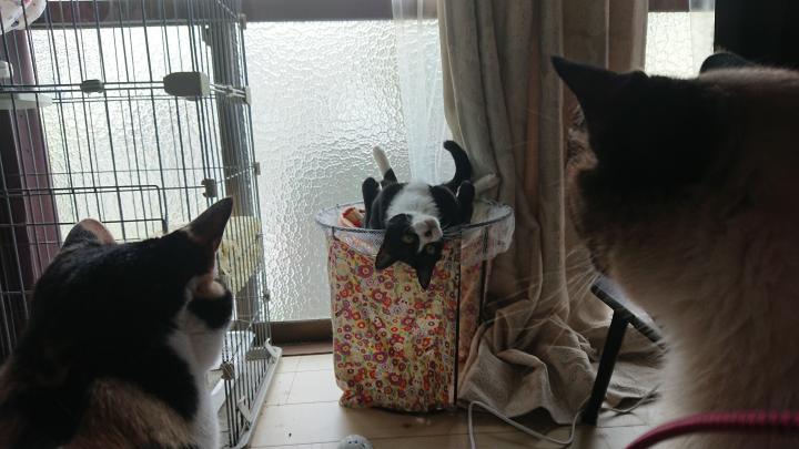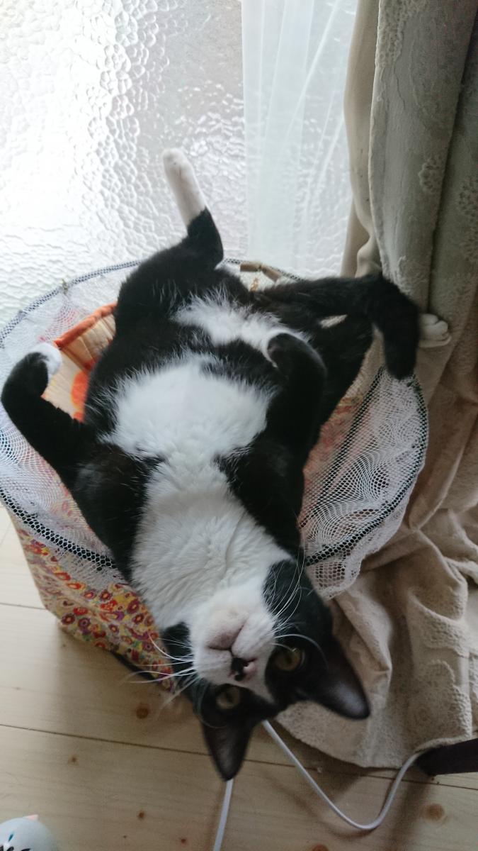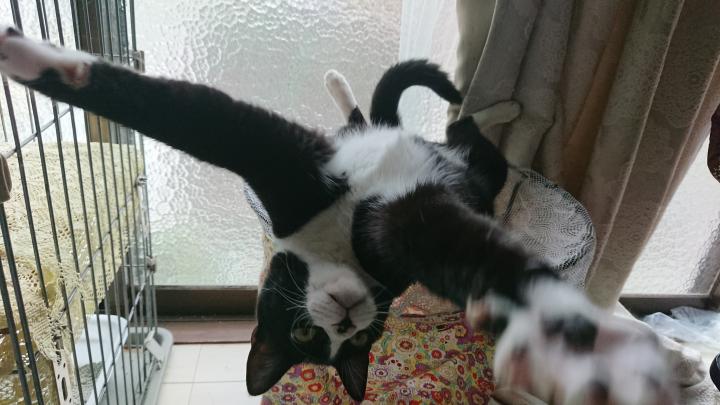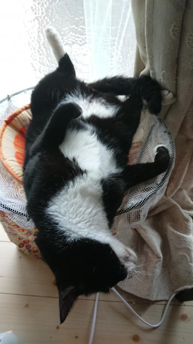 にゃんもっくの上で何故か倒れんばかりに背中を押しつけご~ろごろ。