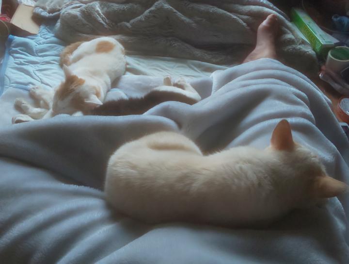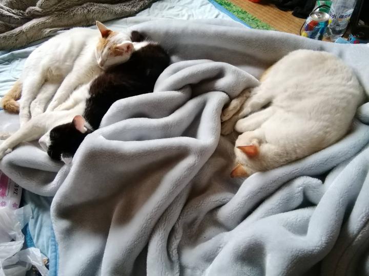 でも、暑くてバラけて寝ていたニャンズが、また固まって寝だす嬉しさが。
