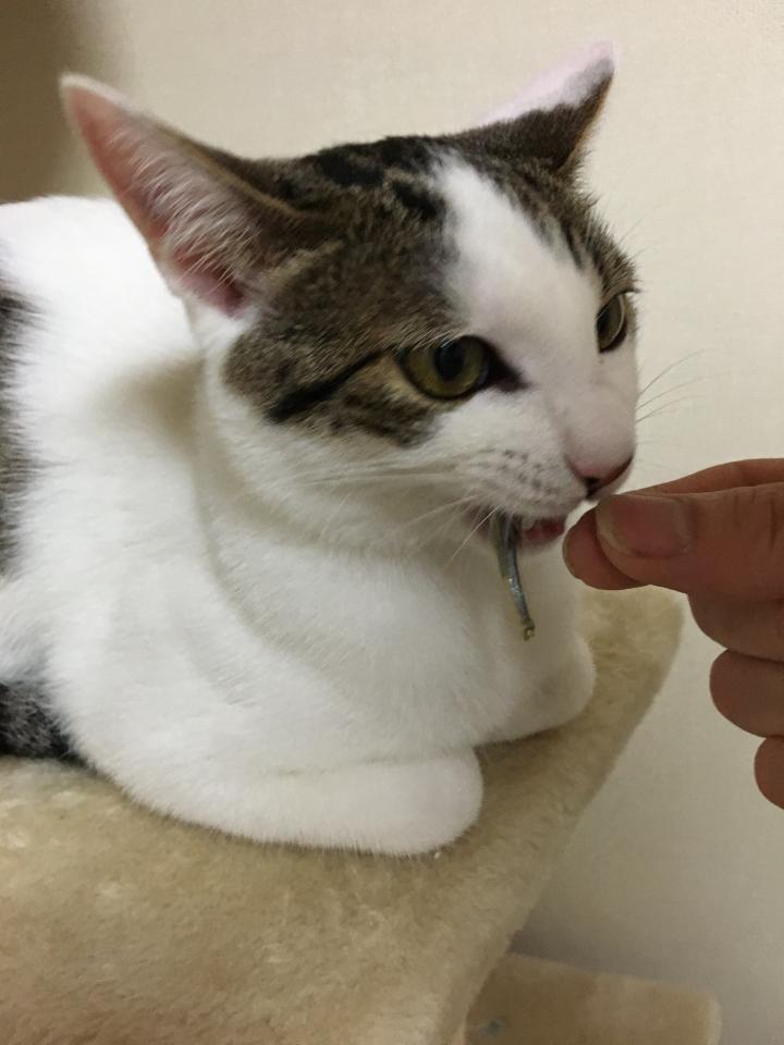 キビナゴをあげてみたけど、ゲンと違って下手っぴ😅