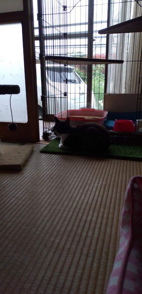 最初こそ、ケージの中でほぼ生活してたものの、最近は家の中をうろうろすることを許され、