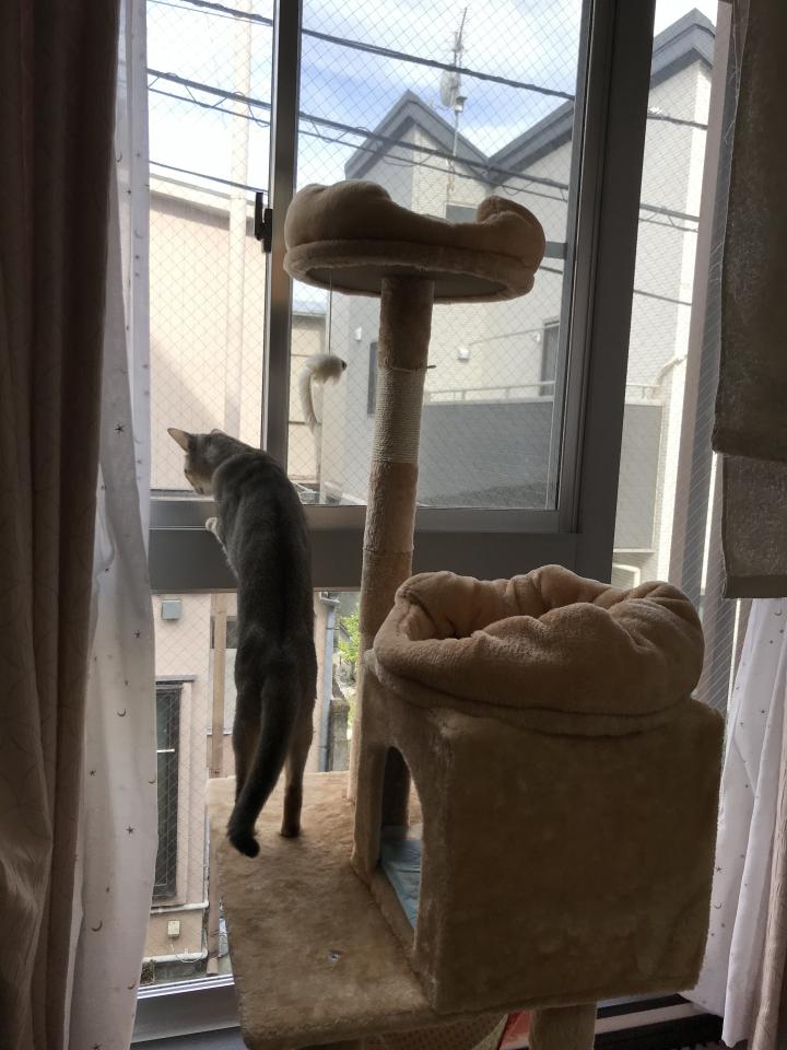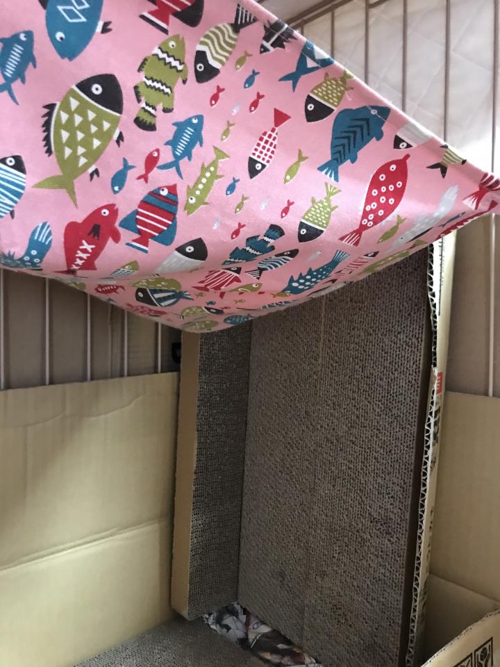 ハンモックは立ててる爪研ぎが倒れないようにと、三階のキャリーバックが落ちないように工夫してます。