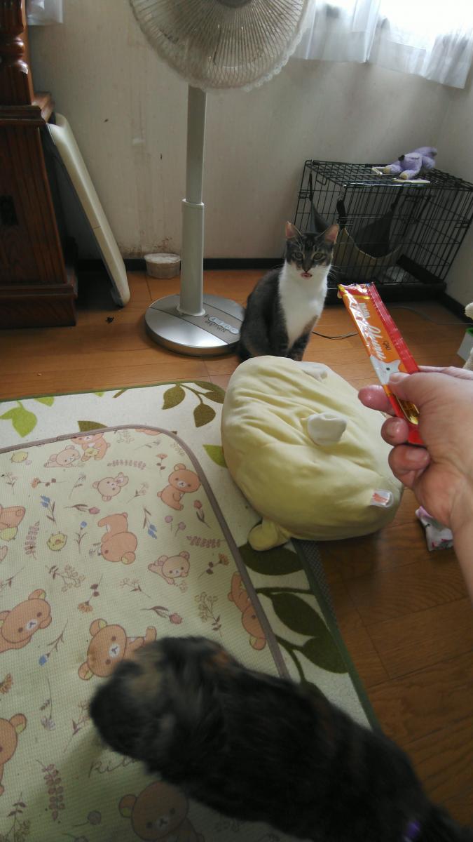 お姉ちゃんのチュールを狙っていますが貰えませんでした🤣