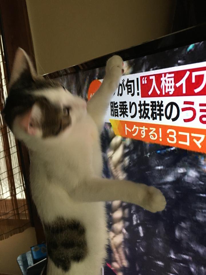 って‼️イワシに反応して捕まえようとテレビカリカリするの辞めて笑