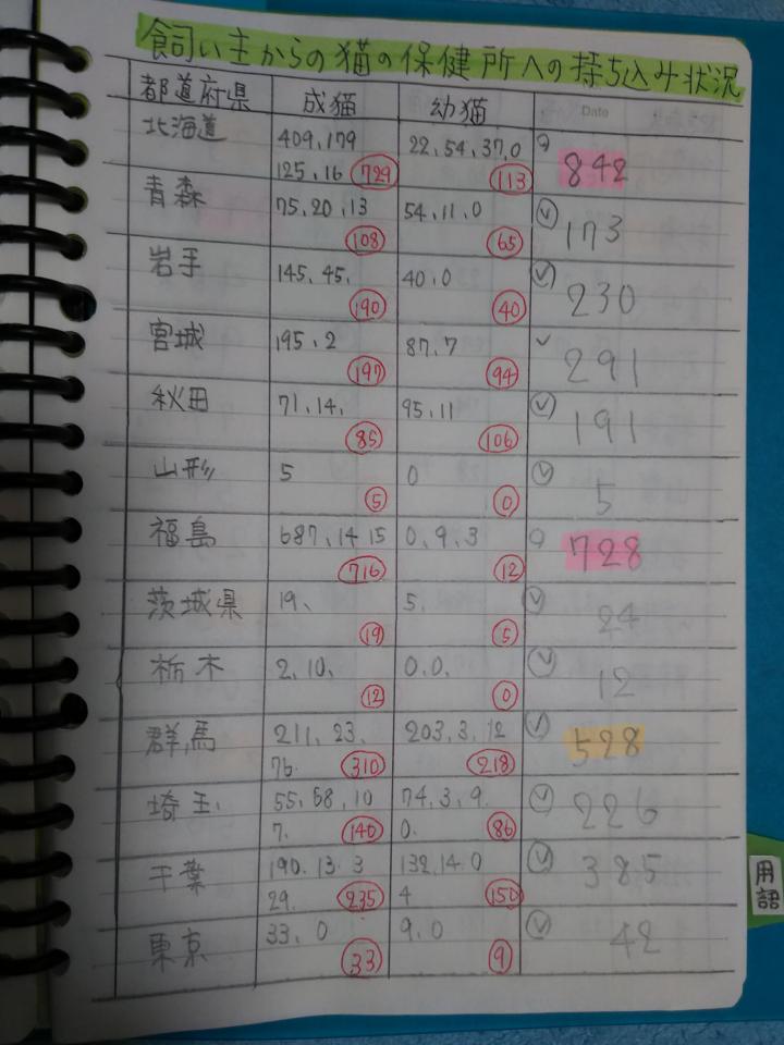福島県:成猫(716匹)、幼猫(12匹)、計728匹