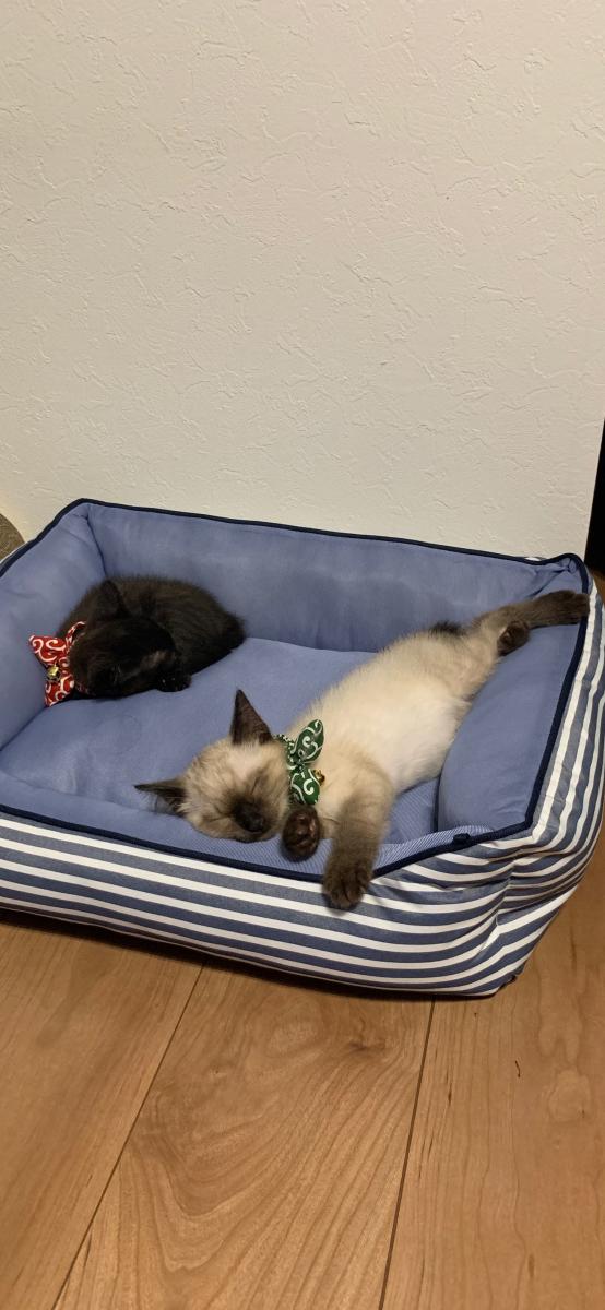 疲れていたのでしょうか、私が帰ってきたときには仲良く寝てました。