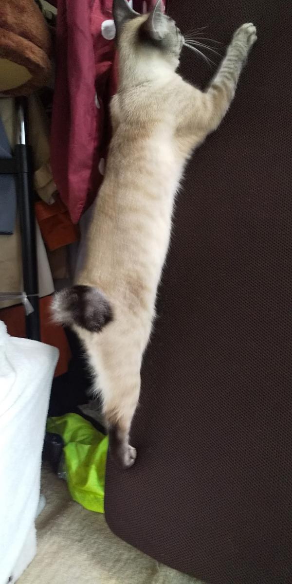 まずはベッドで爪とぎ&壁上りでウォーミングアップ(笑)