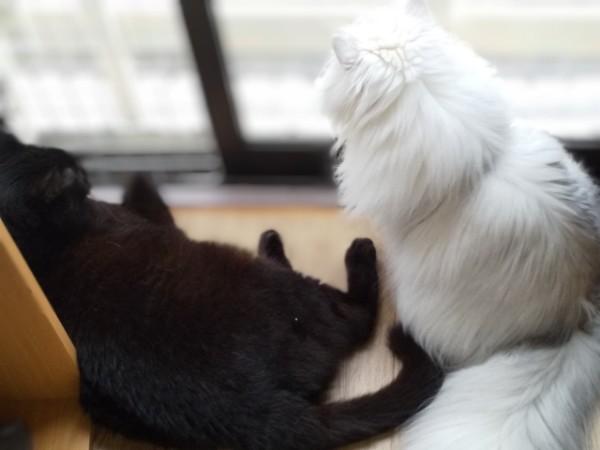 2匹で後ろ足で立って前足でポコスカ叩き合ってます💦
