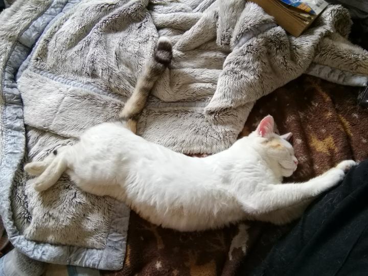 布団で添い寝、ヒザ乗り、モフモフ度50%アップ(当家比)などなど。