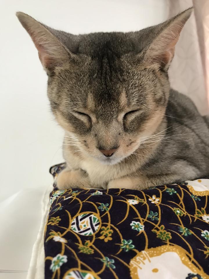最後はビビちゃん部屋の上の座布団に座って招き猫🐱