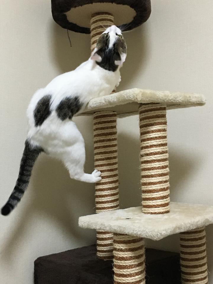 ミルク、余程美味しかったのか木登りならずキャットタワー登り大会を開催💧