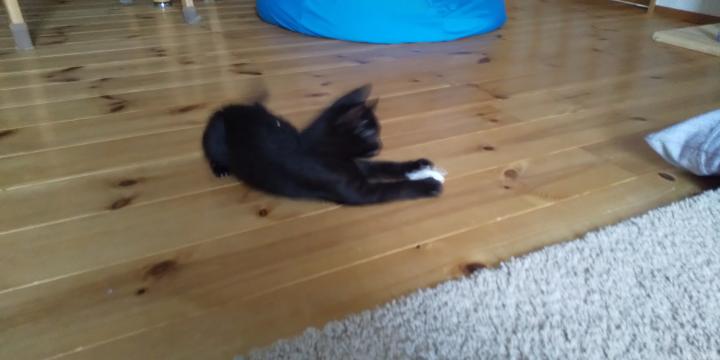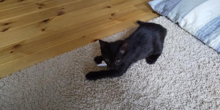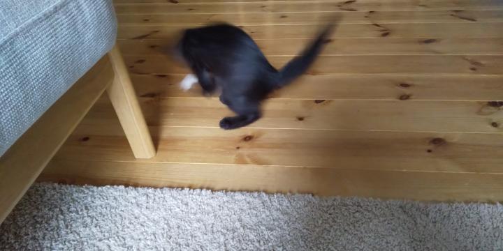 丸めたティシュで30分は遊んでいるうにちゃん。なんでもおもちゃになるってスゴい٩(ˊᗜˋ*)و天才!(←親ばか)