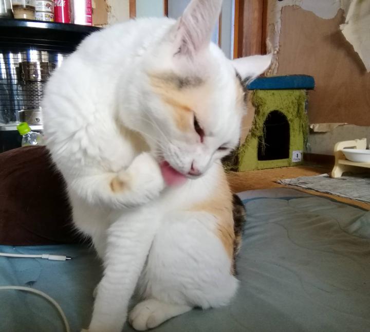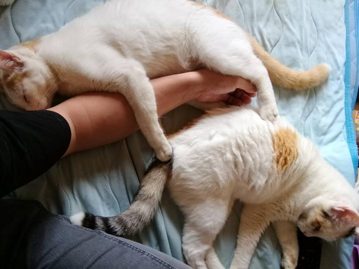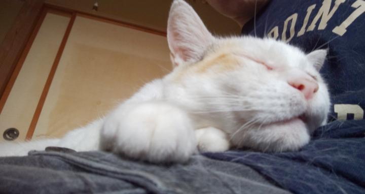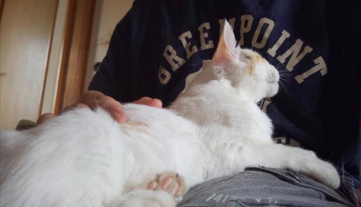 「知ってるのよ、ヒザに乗ればイチコロだって事😸」