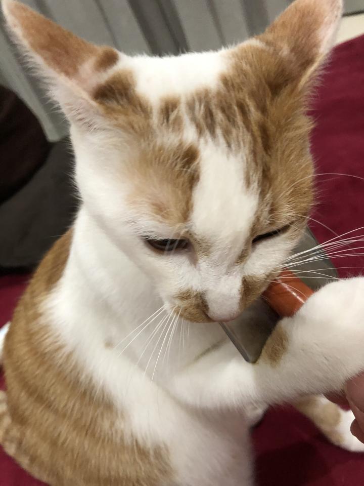 このブラシをチラつかせ名前を呼ぶとトコトコ近寄ってきて、しっかり毛並みをとかしてくれと言わんばかりにスタンバイしてくれます😊